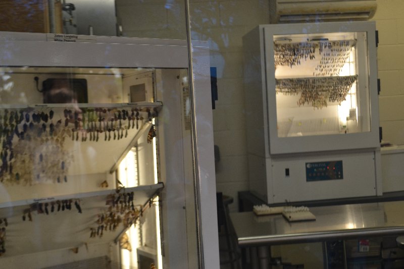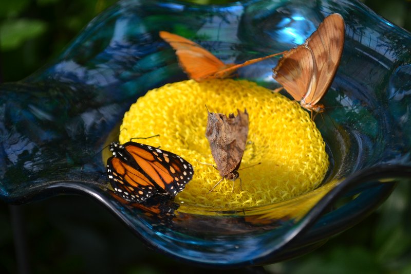 You walk through two sets of doors that lead you to a greenhouse filled with plants and at least a dozen different types of butterflies. The butterflies fly from flower to flower. There’s even an area where you can see butterflies emerging from their chrysalis.